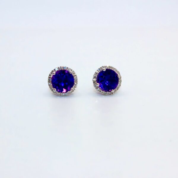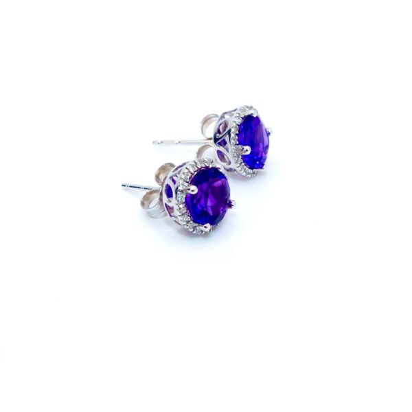 Aretes oro 14k amastistas redonda 1.53 ct con brillantes 0.14 ct