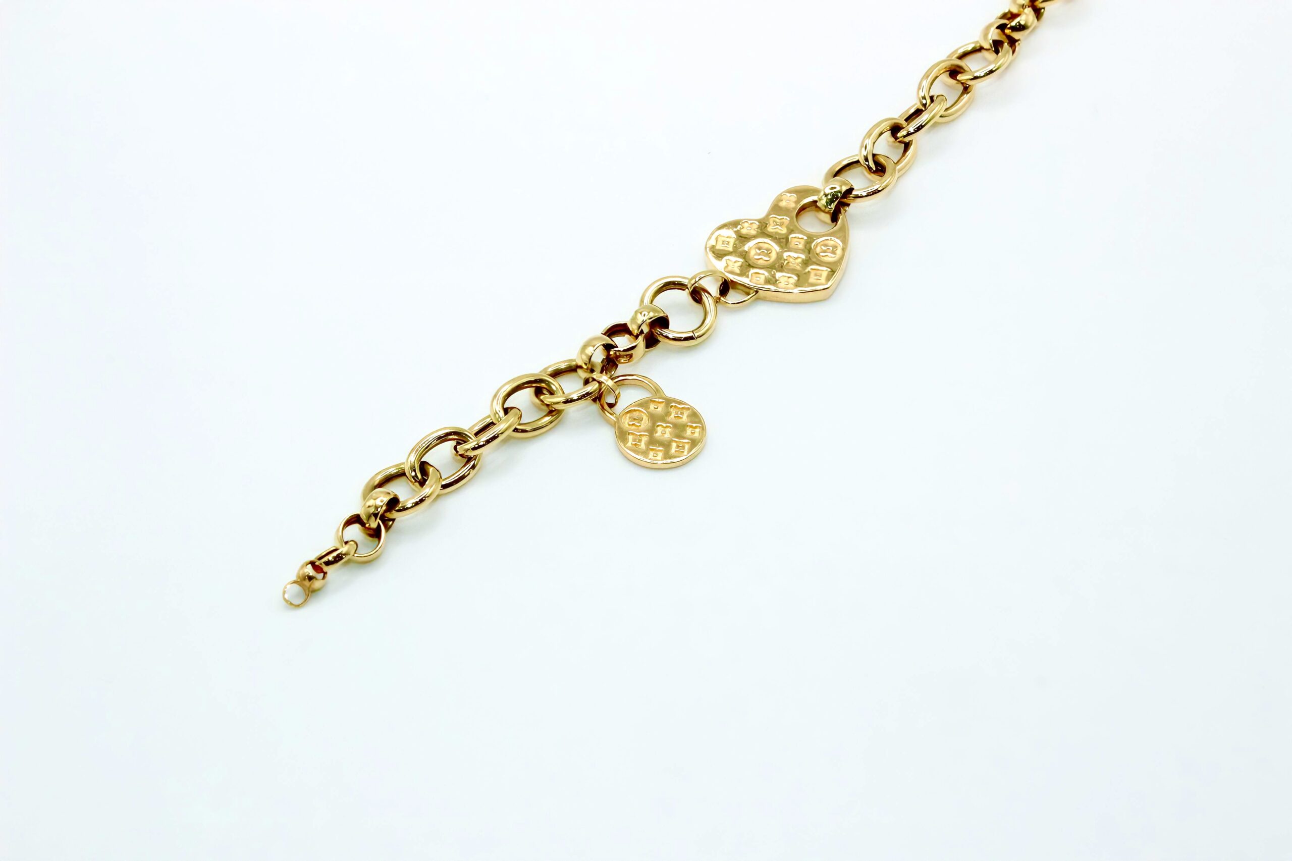 Brazalete oro 14k corazon y candado cantidad